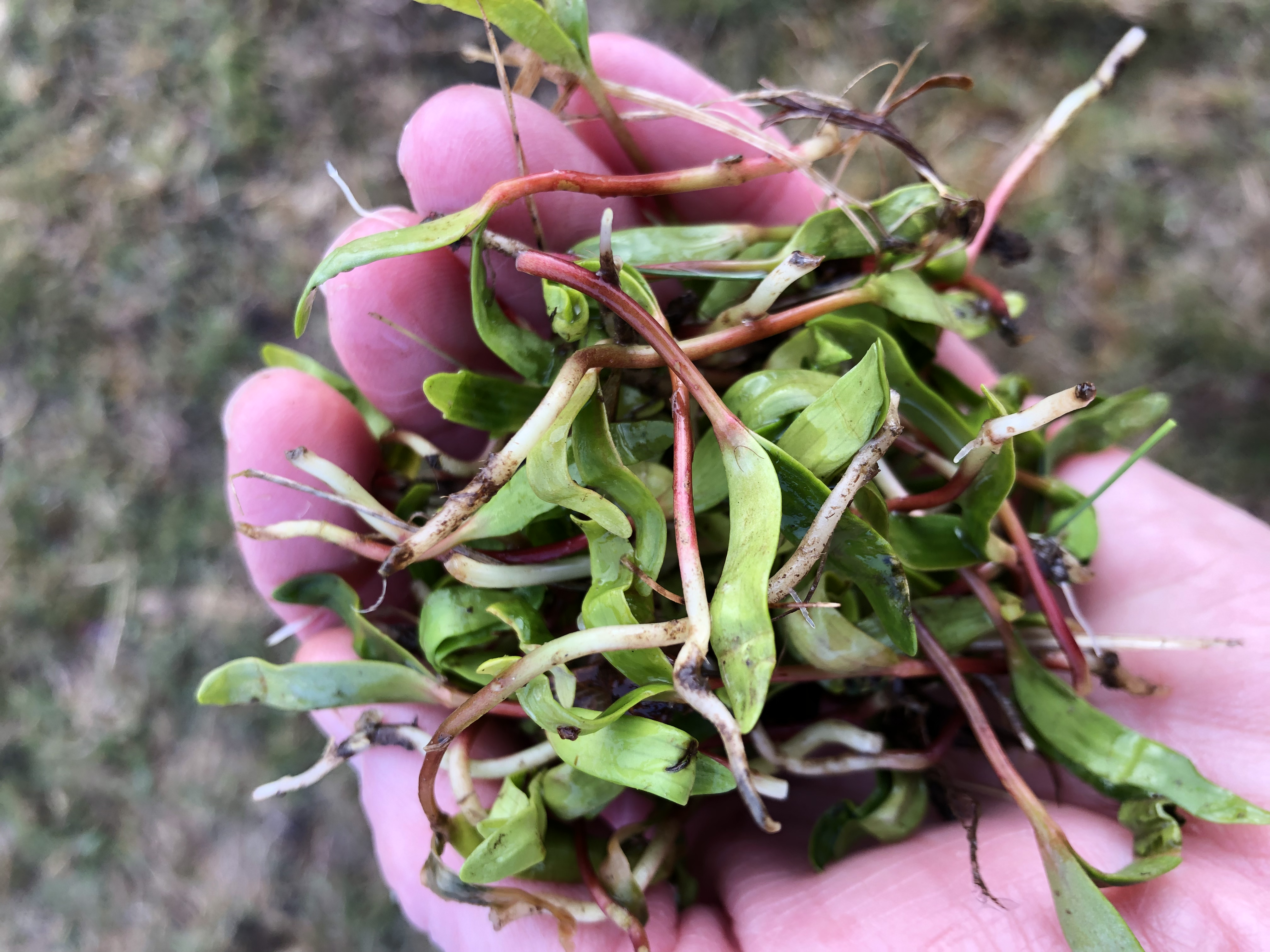 Every day just now, when I’m out walking the dogs through the fields, I slow down, scanning the ground, and bending to pick up tiny green shoots.